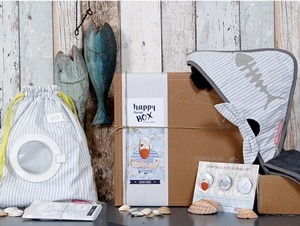 La Happy Choupi Box n’a pas échappé à cette règle : une boîte coffret conçue et développée par nos soins à la sauce Little Crevette, des petits goodies : badges, cartes illustrées dessinés spécialement pour ces coffrets et même notre joli journal de bord pour bébé, conçu page à page dans notre petit atelier… pour amuser, surprendre et même émouvoir un peu…